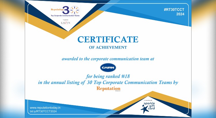 Cairn Oil & Gas’s Corporate Communication team has secured the 18th position in Reputation Today’s latest rankings of India’s Top Corporate Communication Teams. This accolade is particularly significant as it places Cairn alongside the top echelon of corporate communicators in the country, surpassing over 1,000 companies with in-house communication teams. The achievement underscores Cairn’s dedication to excellence in communication practices and reinforces its reputation as a leader in the industry.