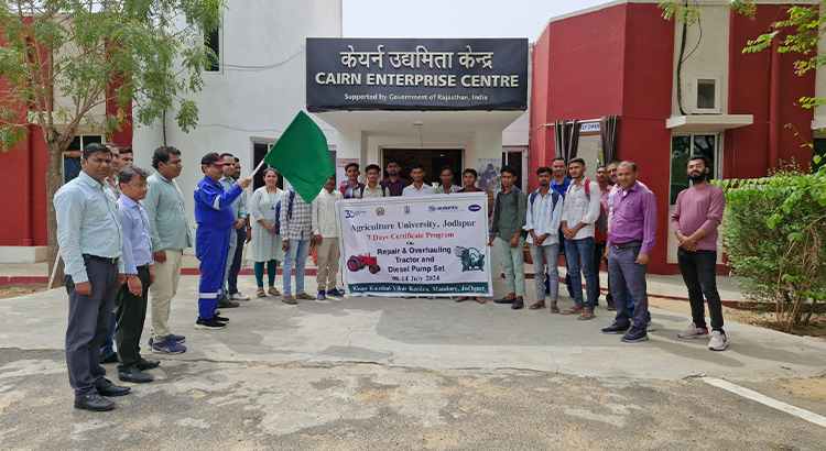 While our Mobile Soil Testing Van aids the farmers, we have also launched a new upskilling program in partnership with Jodhpur Agriculture University. The “7 Days Tractor Training Certificate Course” inaugural batch has commenced at Cairn Enterprise Center. The 1st batch equips 21 Barmer youths with theoretical and practical tractor operation skills. This initiative is a testament to the integral role of the local community in our efforts to create new income-generating opportunities and support the agricultural sector.