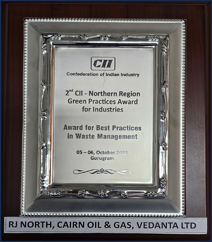 RJ North has been felicitated at the 2nd Confederation of Indian Industry (CII) Northern Region Green Practices Award for Industries under the “Award for Best Practices in Waste Management” category. On behalf of RJ North, the award was jointly received by Dr. Bhoma Ram Jat, Chief Environment Officer; Ankit Sharma, Manager – Sustainability and Shivam Kumar, Engineer – Environment in an award ceremony held in Gurugram on October 5 – 6, 2023.